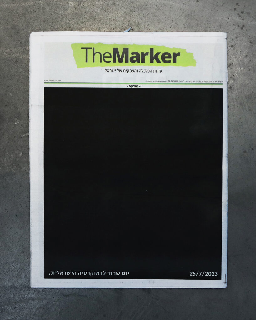 ב-24.7.23 בשעה 16:00 העבירה הממשלה את חוק ביטול עילת הסבירות. מטה מחאת ההייטקיסטים ביקש לייצר מהלך בולט, חזק ונועז. בחלוף פחות מ-12 שעות בלבד צבענו את כל שערי העיתונים במדינה ופתחנו את מהדורות החדשות בארץ ובעולם.